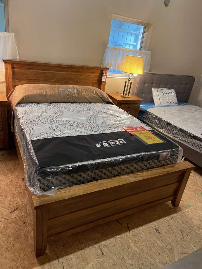 Queen Size Bed with 46 inch high headboard, 22 inch high footboard. 66 inches wide. Finished in our Barn Board Stain. Also available in Single or Double size.
